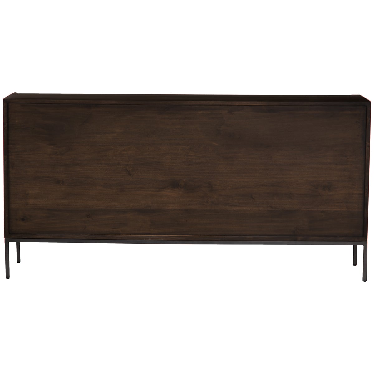 Asymmetry creates a dynamic, modern aesthetic. Impulses from mid-century are reinvented with a mix of warm woods and hard iron. Character walnut and untouched oak reveal knots and natural beauty marks. Exposed dovetail joinery and rubbed iron finishes add another layer of interest and the appearance of age.