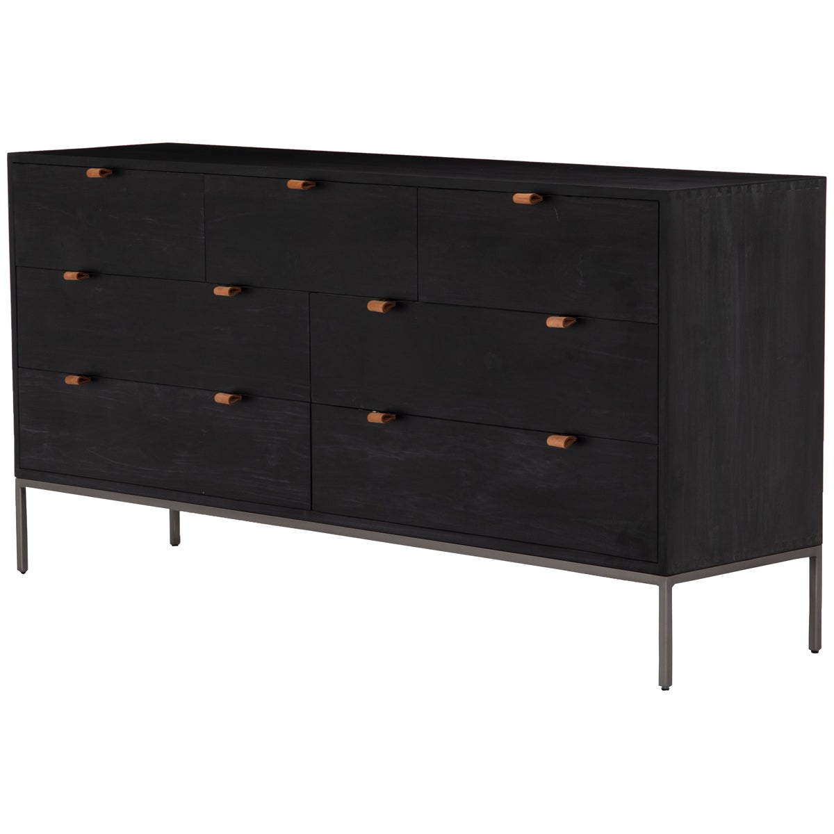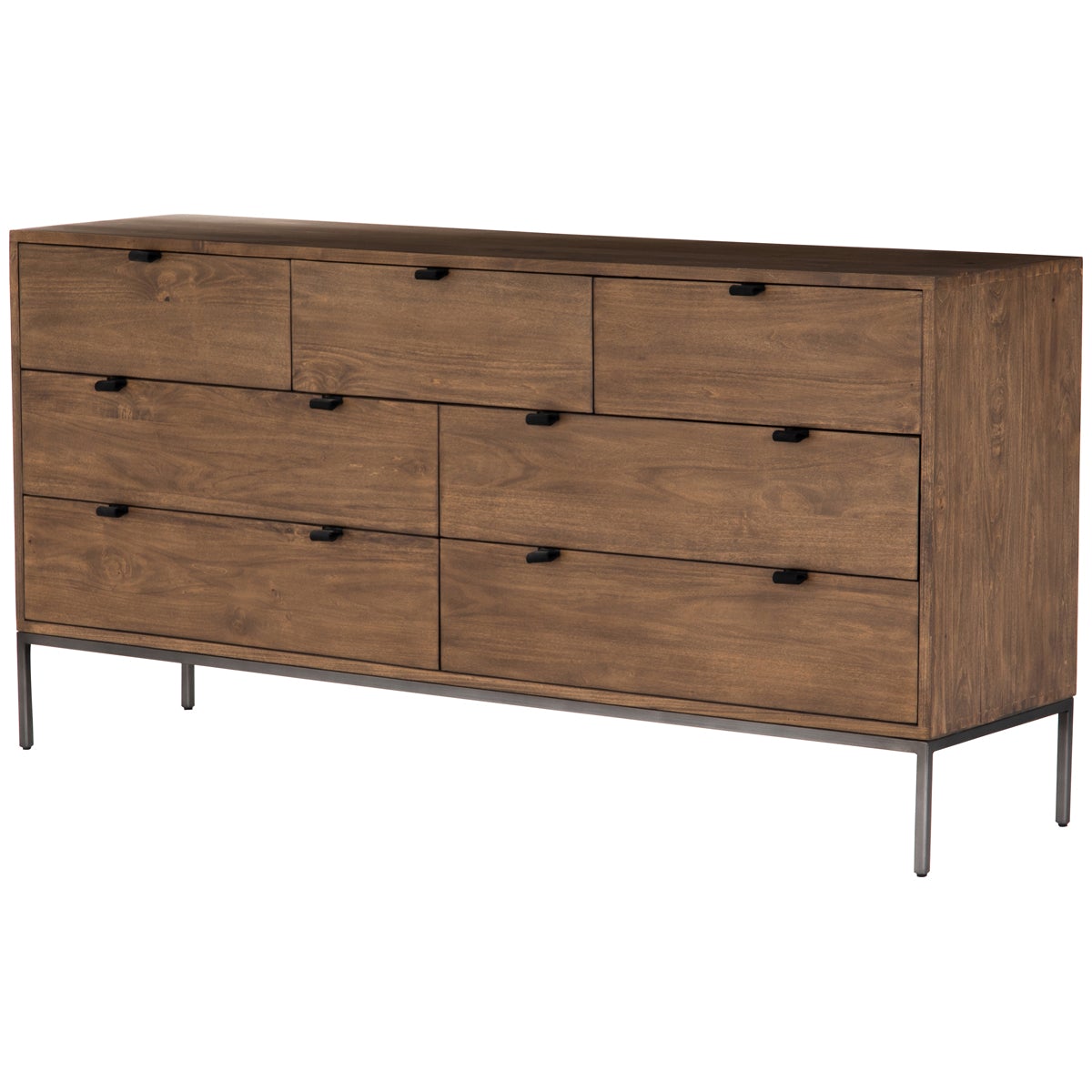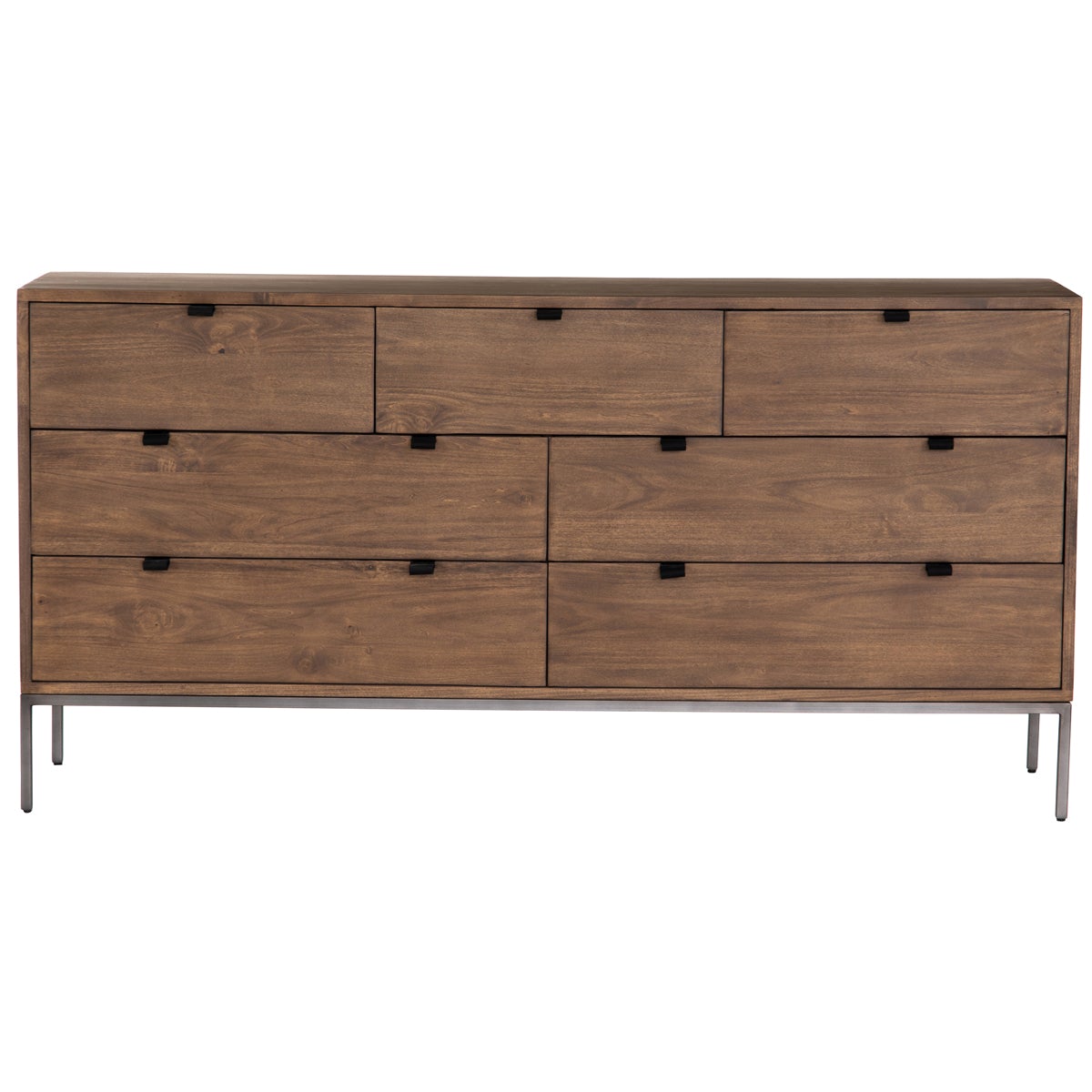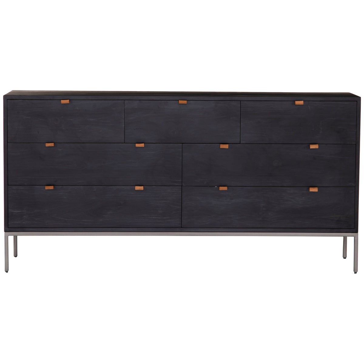 Inspired by clean mid-century design, a stylish dresser of poplar offers plenty of bedroom storage space thanks to seven spacious drawers. Metal-secured leather pulls add a textural element of surprise.