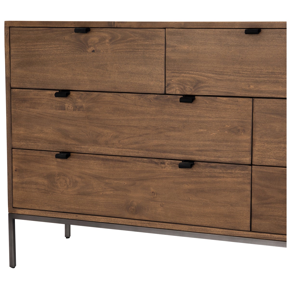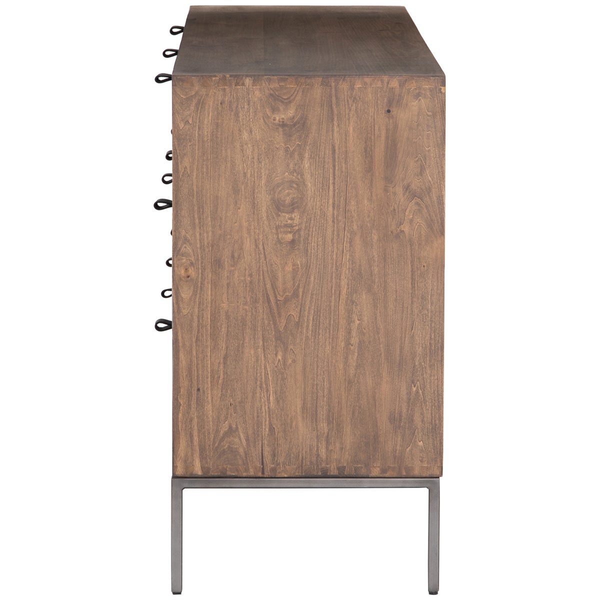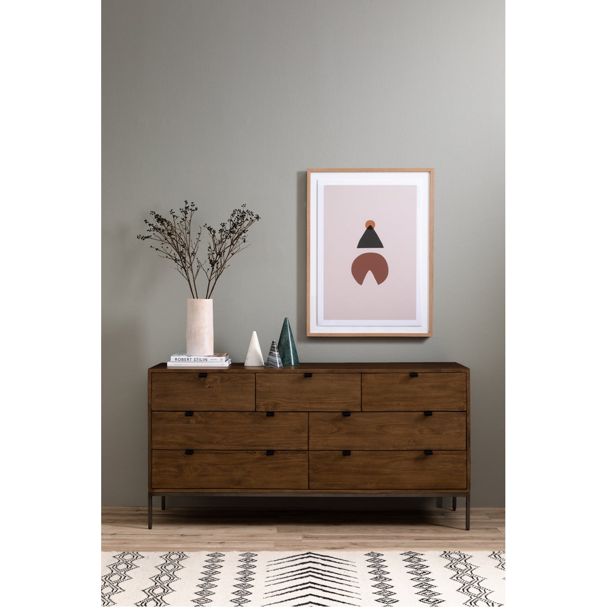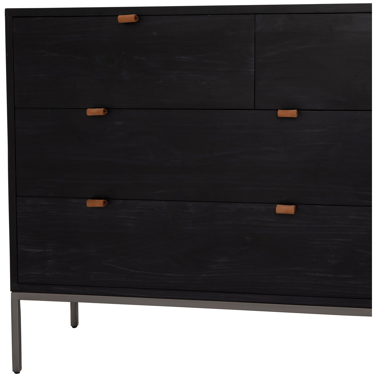 Inspired by clean mid-century design, a stylish dresser of poplar offers plenty of bedroom storage space thanks to seven spacious drawers. Metal-secured leather pulls add a textural element of surprise.