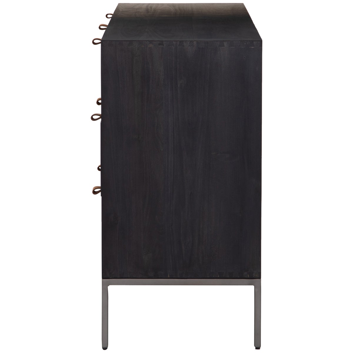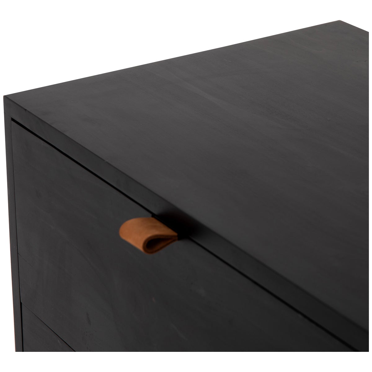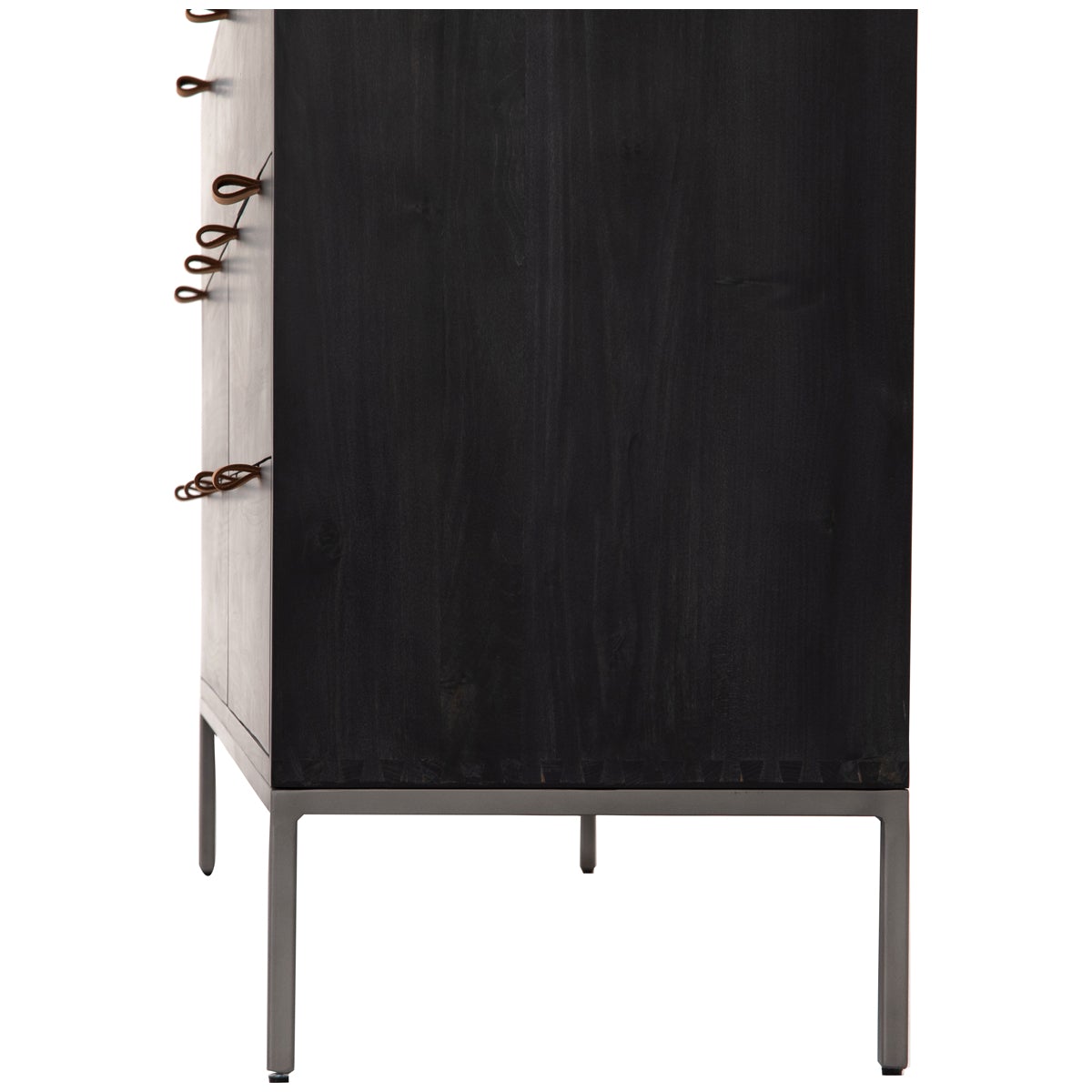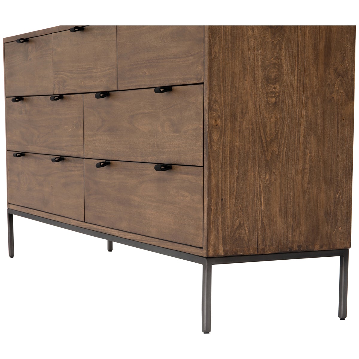 Inspired by clean mid-century design, a stylish dresser of poplar offers plenty of bedroom storage space thanks to seven spacious drawers. Metal-secured leather pulls add a textural element of surprise.